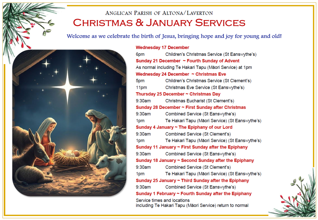 CHRISTMAS 2025 AND JANUARY 2026 SERVICES
