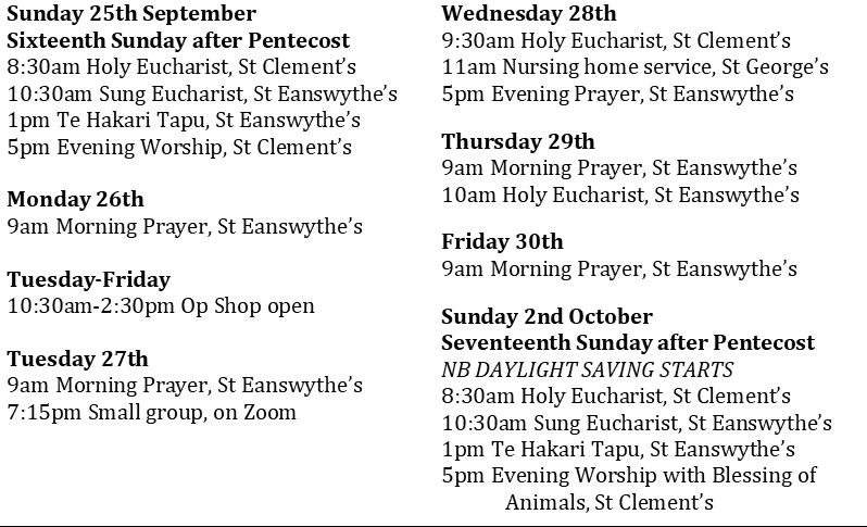This week in our parish: 25 September 2022 Posted on September 24, 2022 by anglicanaltlav You can find more details in this week’s pew sheet. Like Loading...