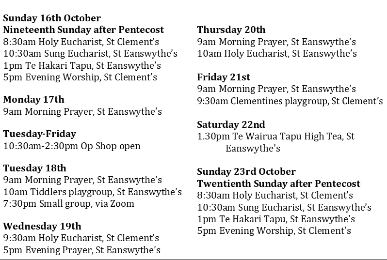 This week in our parish: 16 October 2022 Posted on October 15, 2022 by anglicanaltlav You can find more details in this week’s pew sheet. Like Loading...