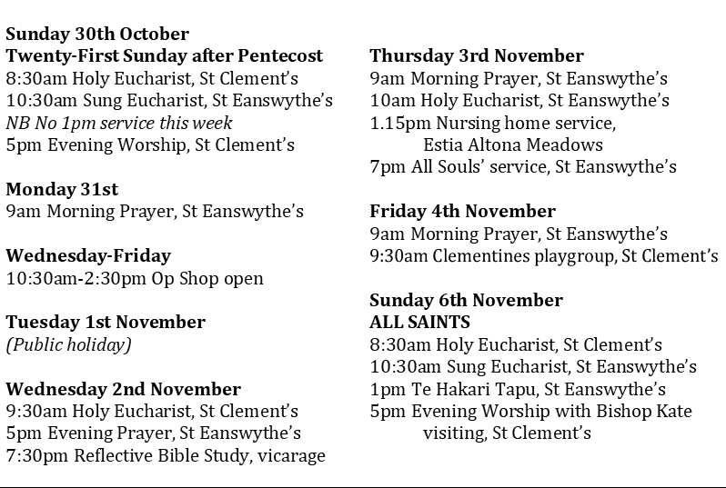 This week in our parish: 30 October 2022 Posted on October 29, 2022 by anglicanaltlav You can find more details in this week’s pew sheet. Like Loading...