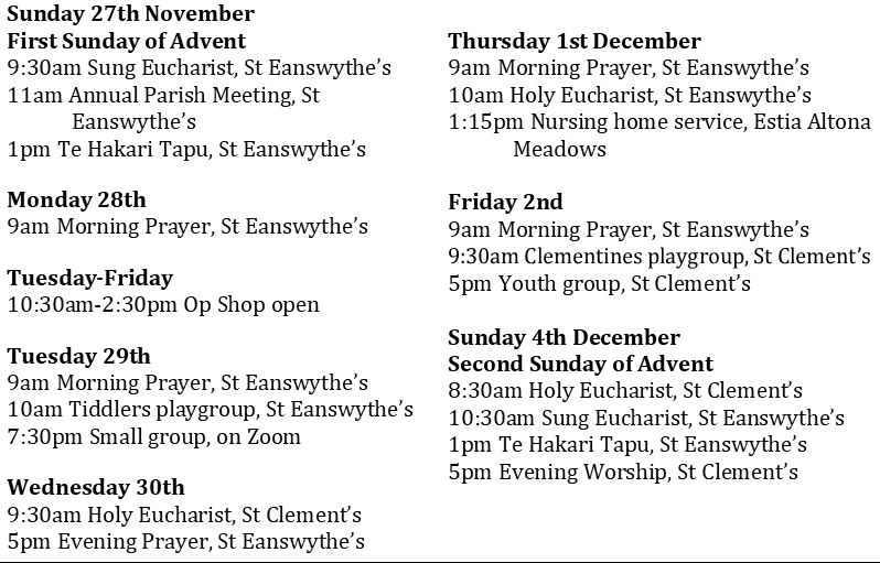 This week in our parish: 27th November 2022 Posted on November 26, 2022 by anglicanaltlav You can find more details in this week’s pew sheet. Like Loading...