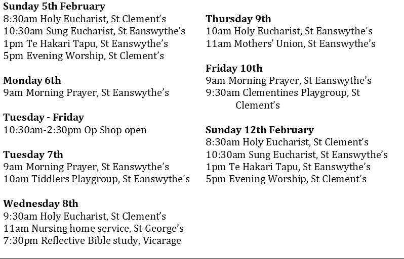 This week in our parish: 5th February 2023 Posted on February 4, 2023 by anglicanaltlav You can find more details in this week’s pew sheet. Like Loading...