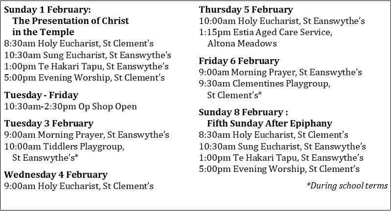This Week in our Parish: 1 February 2026 Posted on January 29, 2026 by anglicanaltlav Share this: Share on X (Opens in new window) X Share on Facebook (Opens in new window) Facebook Like Loading...