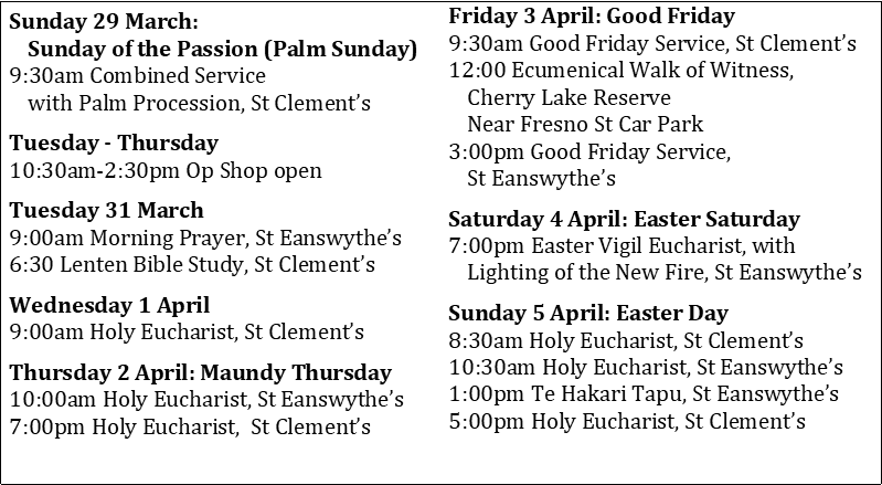This Week in our Parish: 29 March 2026 Posted on March 27, 2026 by anglicanaltlav Share this: Share on X (Opens in new window) X Share on Facebook (Opens in new window) Facebook Like Loading...