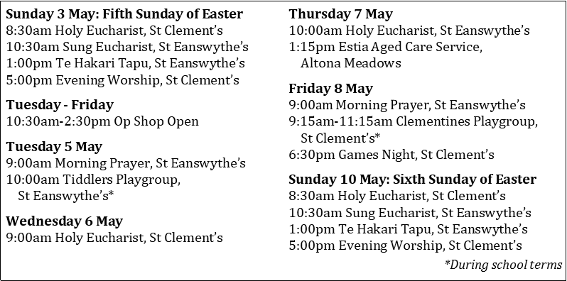 This Week in our Parish: 3 May 2026 Posted on April 30, 2026 by anglicanaltlav Share this: Share on X (Opens in new window) X Share on Facebook (Opens in new window) Facebook Like Loading...
